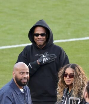 Jay-Z arrived with his and Beyoncé’s daughter, Blue Ivy Carter, who sported a stylish black bomber jacket and designer sunglasses. The pair were also seen with Rumi — Jay-Z’s youngest daughter.