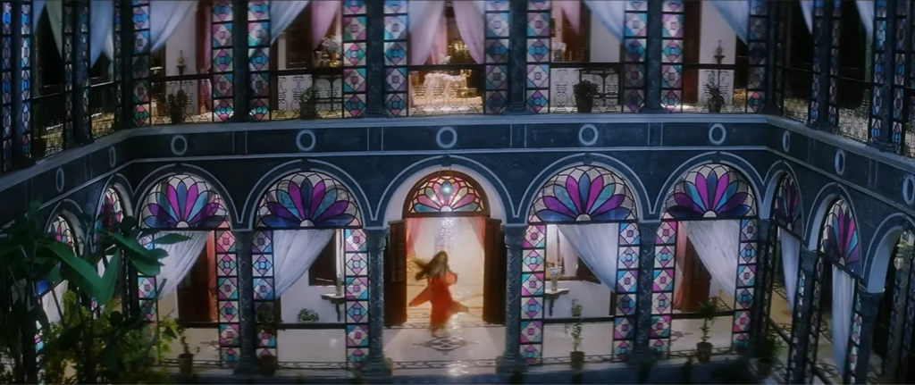 One of the most stunning sets in the movie is Paro’s glass room. The set was built using 1.22 lakh stained glass pieces and took 9 months to complete. Designed by Nitin Desai, the glass required constant repairs due to heat from the studio lights, showing the effort put into creating this beautiful space.