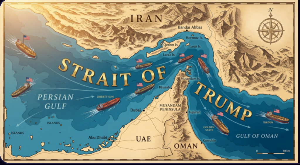 Map shows Strait of Hormuz as Trump