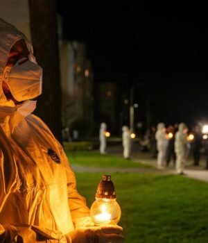 Sombre ceremonies were held in the purpose-built town of Slavutych in northeastern Ukraine for the evacueed plant employees, as well as at a Kyiv monument in honor of the fallen first responders.