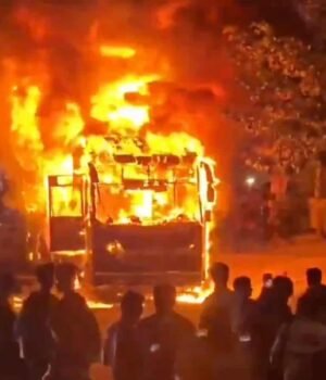 Around 11 pm on Friday, as the bus approached the Padmavathi Plaza bus stop in KPHB, flames were reportedly spotted emerging from the driver’s cabin.