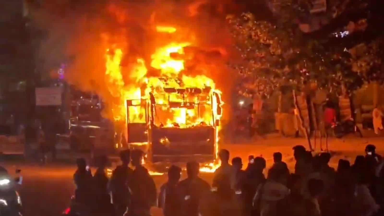 Video: Fire engulfs AC sleeper private bus in Hyderabad’s KPHB