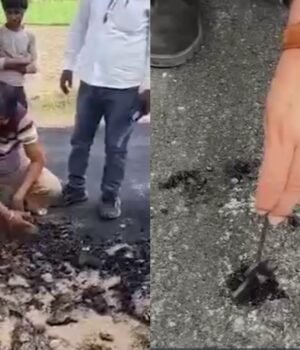 A newly constructed road in Uttar Pradesh’s Mainpuri has sparked outrage after a viral video showed villagers allegedly peeling it apart with their bare hands, raising serious questions about the quality of public infrastructure.