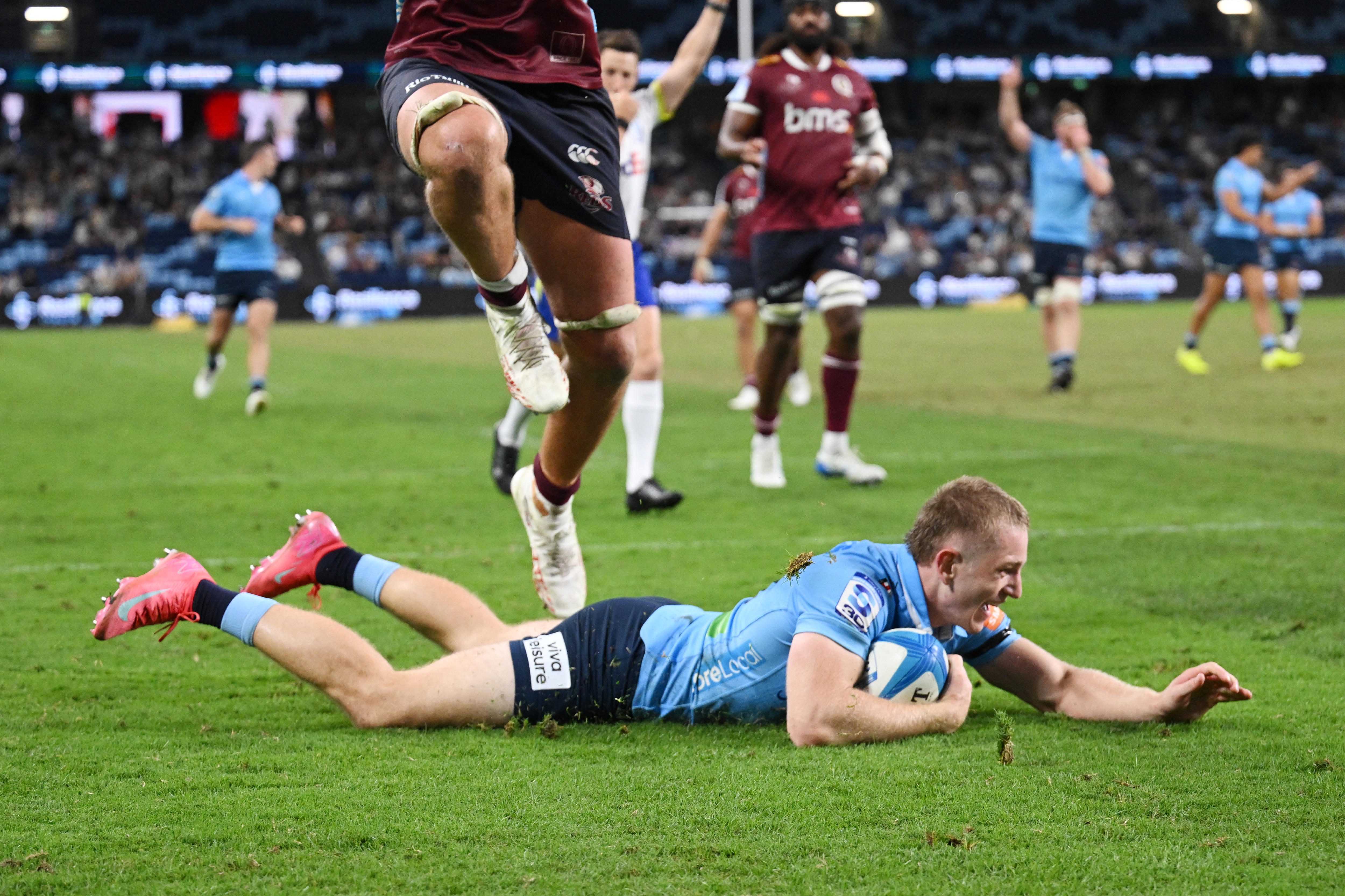 After spurning multiple opportunities at penalty goals, the Waratahs’ confidence paid off when powerhouse flanker Clem Halaholo bulldozed over on debut for the opening try of the night in the seventh minute.