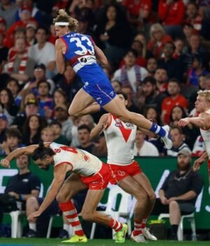The star West Australian forward left the Dogs’ clash with Sydney on Thursday night via stretcher after a sickening fall while flying for a mark.