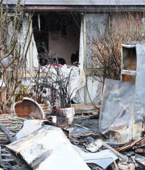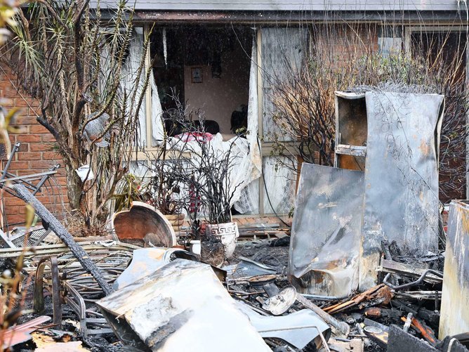 The house was partially damaged by the flames, with the items in the front yard completely incinerated.