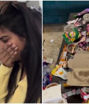 In the video, the host was seen recording her reaction to the aftermath left behind by guests. The room appeared heavily littered, with half-eaten food left out in the open, spills across the floor and even on walls, and belongings scattered everywhere. The beds were left in complete disarray, adding to the chaos.